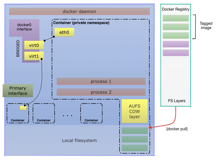 For Win/Mac, uses a single Vagrant VM to run a minimal docker environment