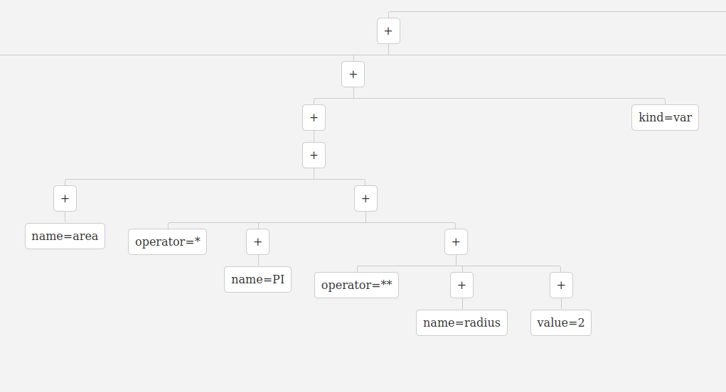 var area = PI * (radius ** 2);Disassemble code