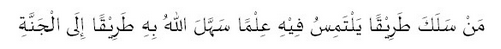“Barang Siapa yang menempuh perjalanan untuk menuntut ilmu. Niscaya Allah memudahkan jalannya menuju Surga.” (HR. Muslim dan At-Tirmizi).