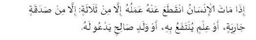 “Apabila Manusia telah meninggal dunia maka terputuslah semua amalannya kecuali 3 perkara yaitu: shadaqoh jariyah, ilmu yang bermanfaat dan anak yang shaleh yang mendoakannya.” (HR. Muslim).