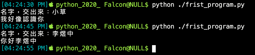print("ERROR! 名字不能為空白!")