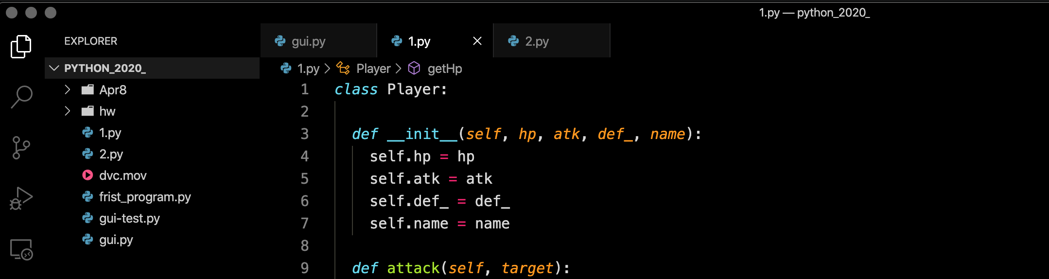 print(setName("小草"))class Player: