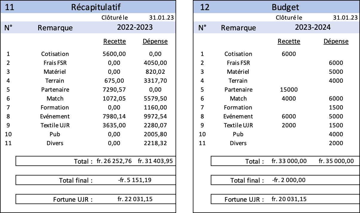 - Rapport du caissier des comptes 2022 et budget 2023