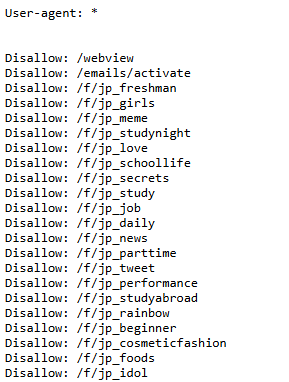 User-agent : 要對哪些搜尋引擎生效( * 表示所有)
