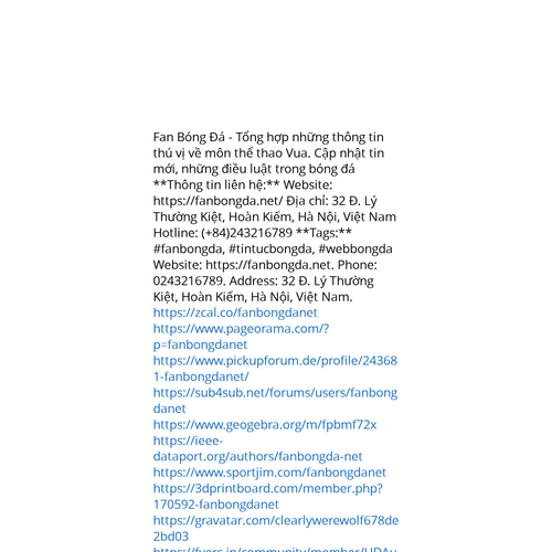 Website: https://fanbongda.net. Fan Bóng Đá - Tổng hợp những thông tin thú vị về môn thể thao Vua. Cập nhật tin mới, những điều luật trong bóng đá **Thông tin liên hệ:** Website: https://fanbongda.net/ Địa chỉ: 32 Đ. Lý Thường Kiệt, Hoàn Kiếm, Hà Nội