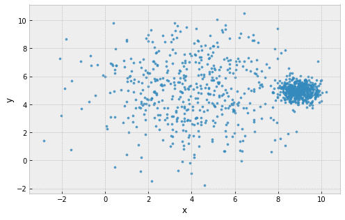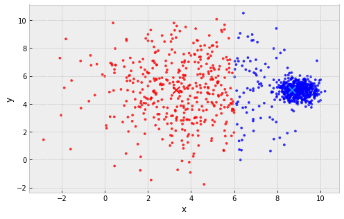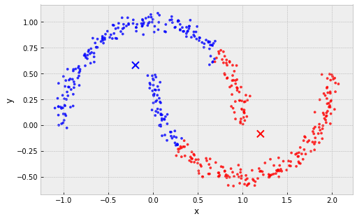 example: 2 clusters, one large and one small