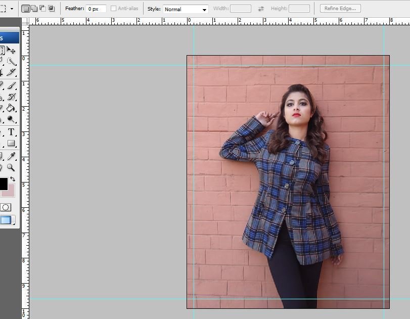 In my preliminary task I placed the masthead at the back of the model as it is one of the conventions of a fashion magazine. But, now that I look at it I did a very poor job and the shadow does not look good either. I used the polygonal lasso tool for it.