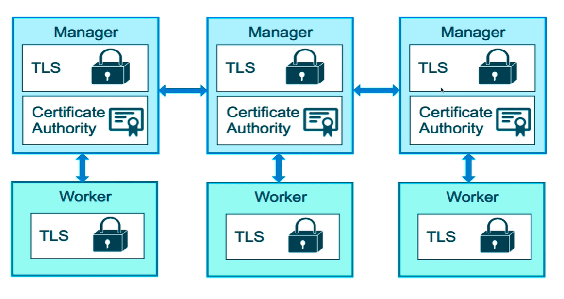 - Default is Managers and Workers "control plane" is TLS + Mutual Auth