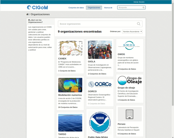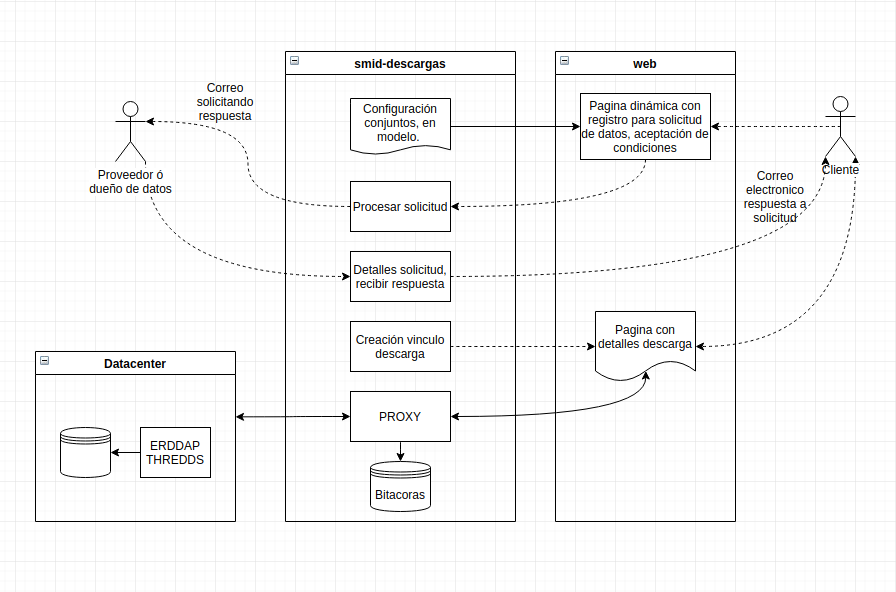 Formulario de registro en sitio smid.cigom.org, con campos necesarios y controles para aceptar condiciones de uso de datos. Esta cuenta permite solicitar conjuntos de datos individualmente. El proveedor es quien acepta o niega la solicitud.