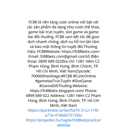 Website: https://fc88betx.blogspot.com/ FC88 là nền tảng cược online nổi bật với các sản phẩm đa dạng như cược thể thao, game bài trực tuyến, slot game và game bài đổi thưởng. FC88 cam kết tốc độ giao dịch nhanh chóng, dịch vụ hỗ trợ tận tâm và bảo m