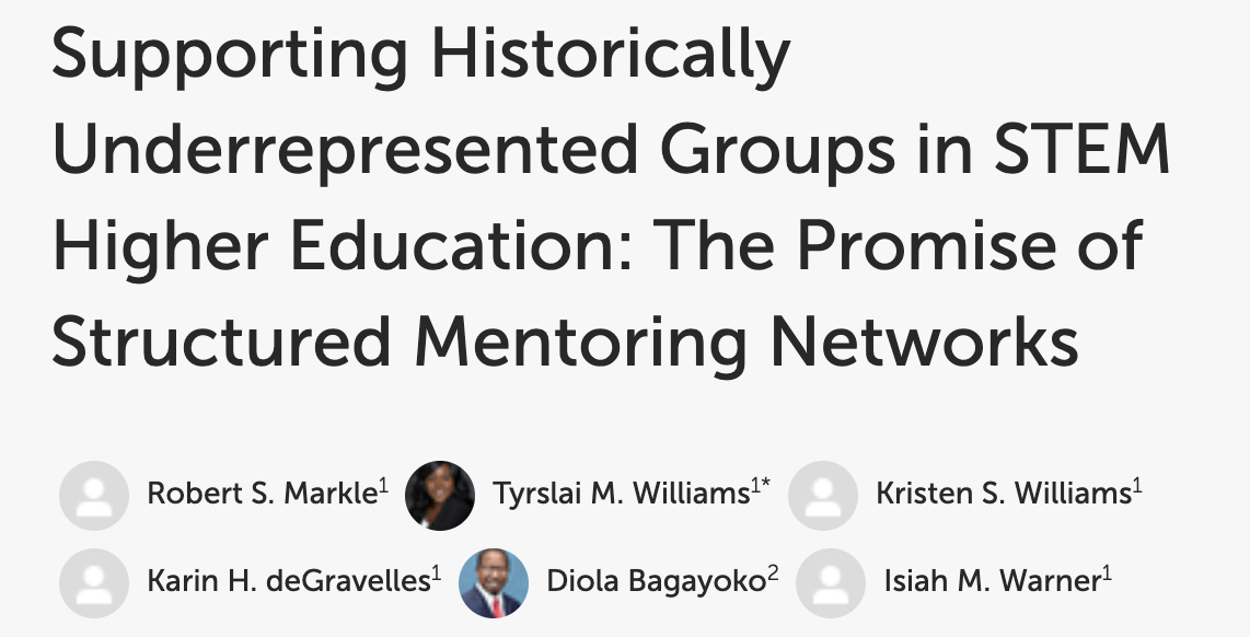 [...] students from historically excluded groups whose research mentors addressed [and] validated their racial and academic identities reported greater involvement in research, higher science identity and belonging in research, and higher STEM degree graduation rates than those whose mentors did not do so (Heager et al. 2016).