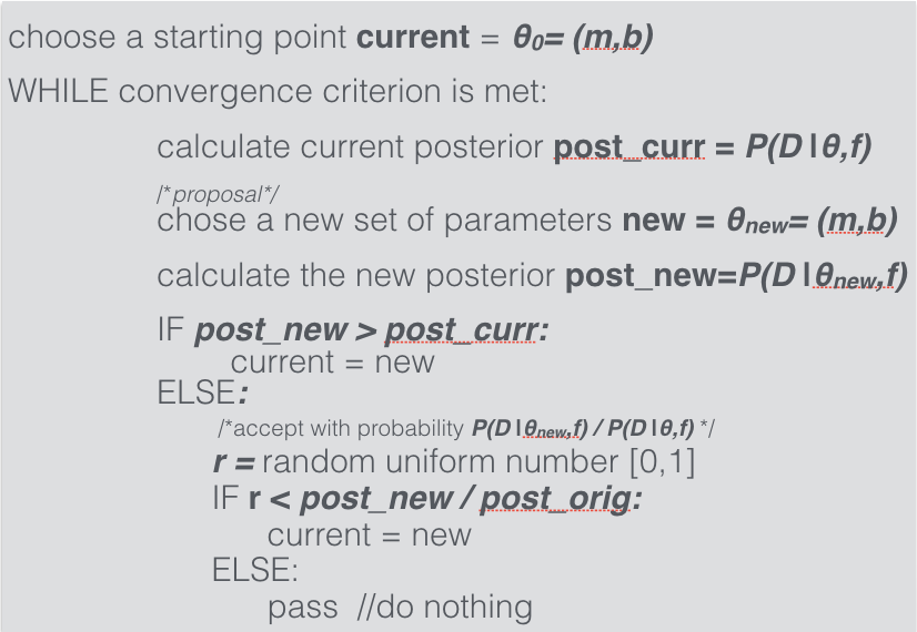 2. if the proposal posterior is better than the posterior at the current location update your position (and save the new position in the chain)