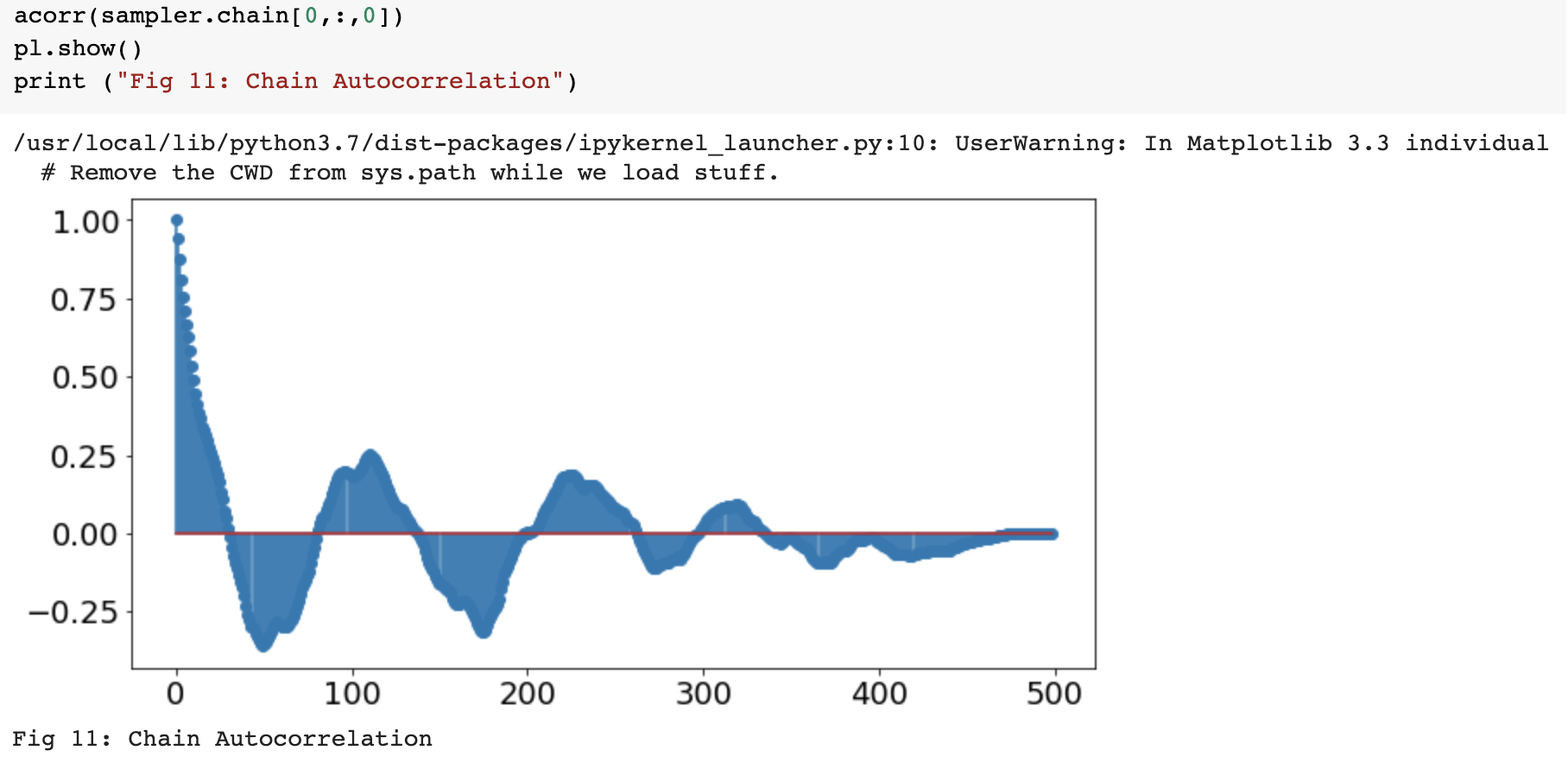 Convergence: It is crucial to confirm that your chains have converged and your parameter space is properly sampled, but it is also very difficult to do it. Methods include checking for stationarity of the chain means and low auto correlation in the chains. The beginning of the chain is typically removed as the chains require a minimum number of steps to move away from the initial position effectively.