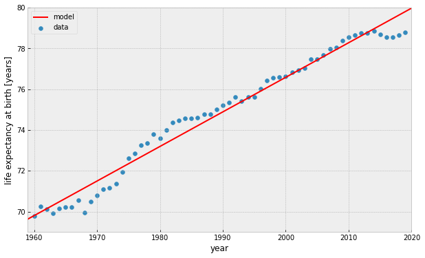 line model: y = a x + b