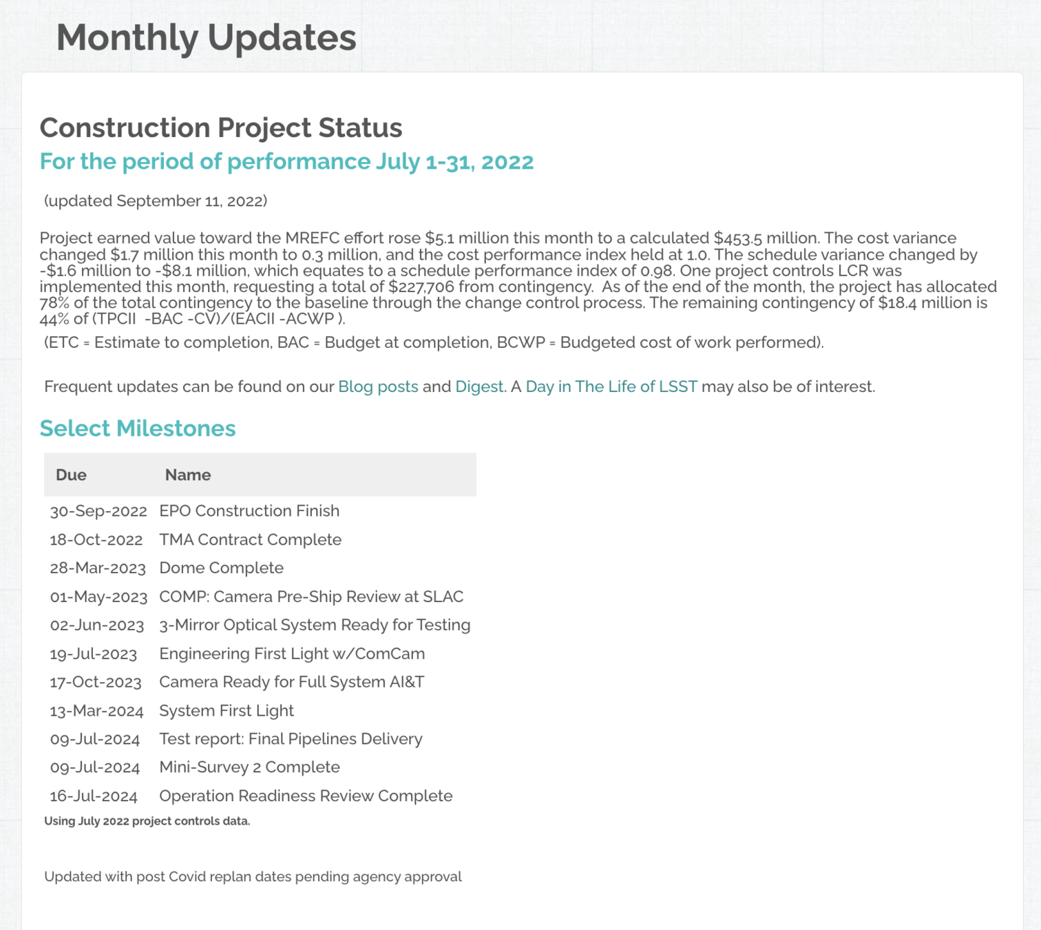 Rubin Montly Updates page
