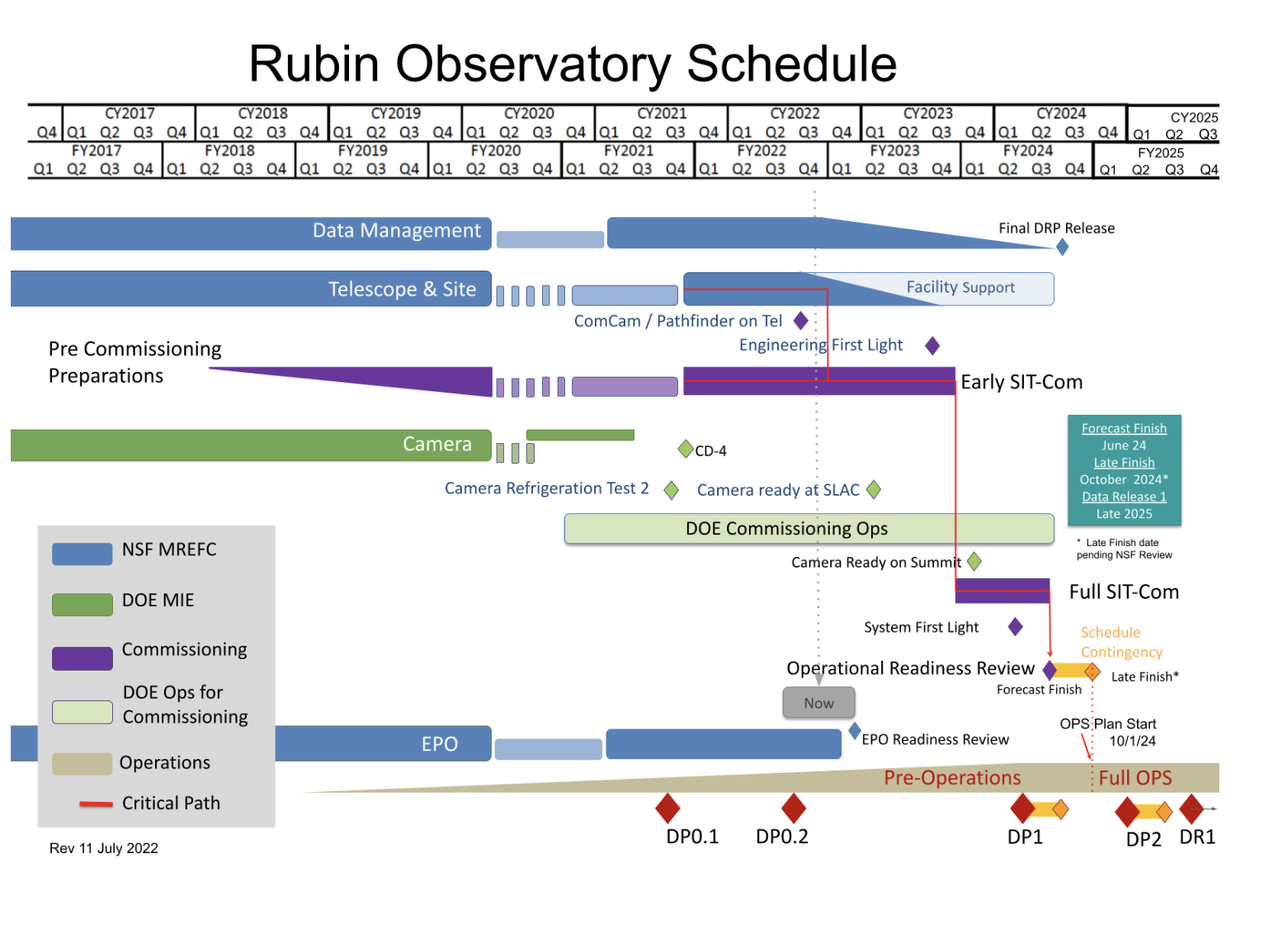 Status: ongoing demonstration of the Camera/Secondary Mirror (M2) removal procedures, and ComCam installation expected in August.