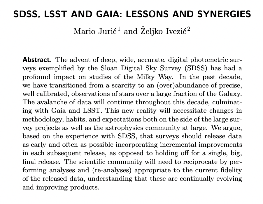 "The Milky Way disk “belongs” to Gaia, and the halo to LSST (plus very faint and/or very red sources, such as white dwarfs and LT(Y) dwarfs)." Z. Ivezich - 2021