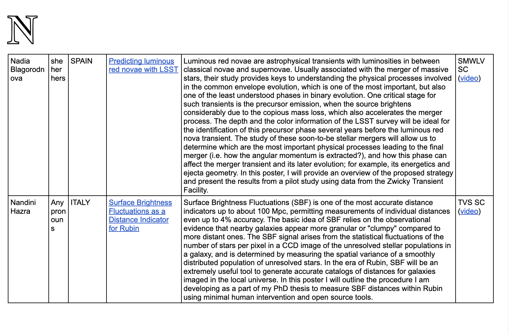 we arranged for short (~5 min) videos presented by conference participants as conference "posters". Many of will be highlighted as "flash talks" in the various sessions