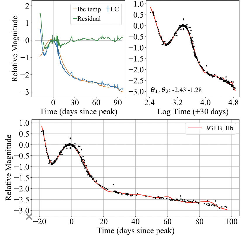- fitting in log-time because the SN evolution is faster at earlier epochs, slower later