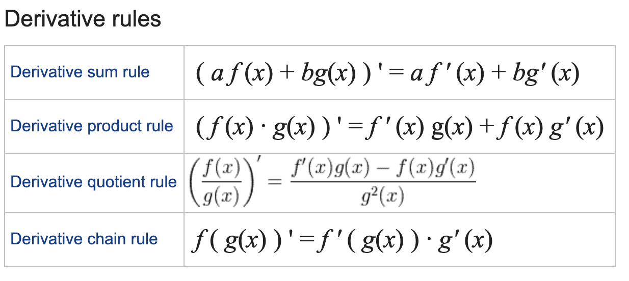 derivative math rules https://www.rapidtables.com/math/calculus/derivative.html