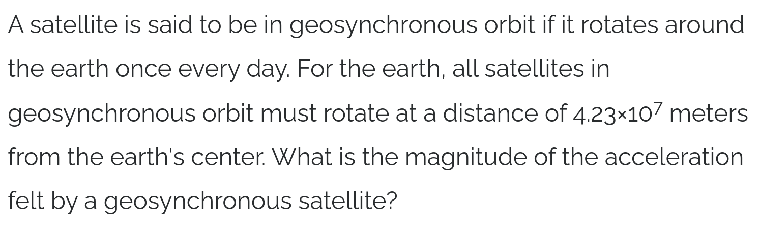1. A centripetal acceleration pointing toward the center of the circular orbit keeps the body moving at constant speed