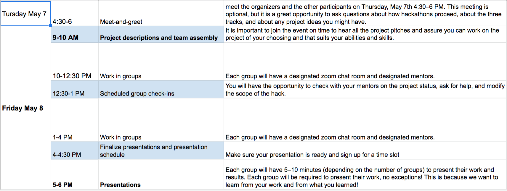 Schedule a check-in with the organizers: we want to make sure you have everything you need half the way through the hackathon!