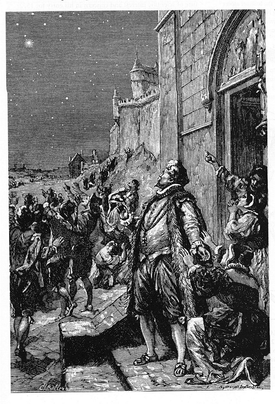 From Flammarion's Astronomie Populaire (1880): in Scania, Denmark, Tycho Brahe first observed a "new star" on November 11, 1572.