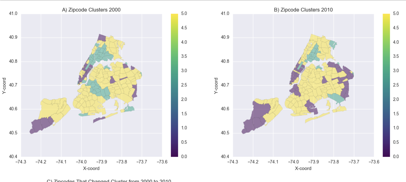 change in business density, income, age, population, racial diversity measures gentrificatoin