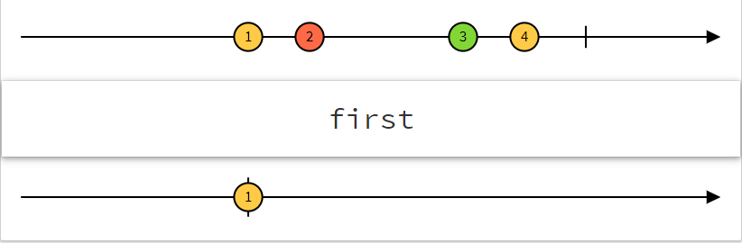 source.pipe(take(1)).subscribe(val => console.log(val));
