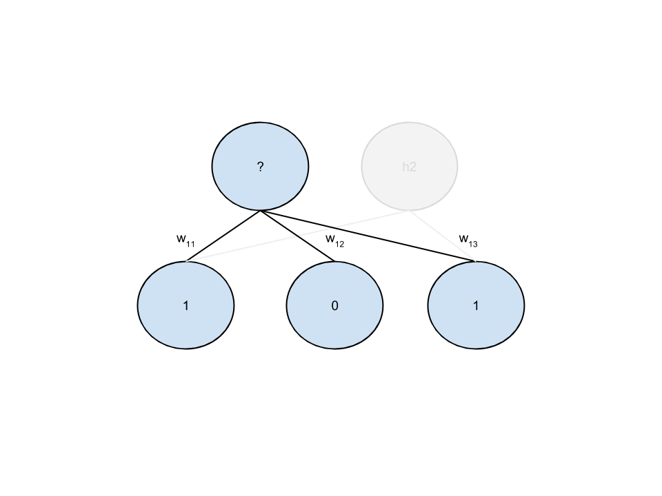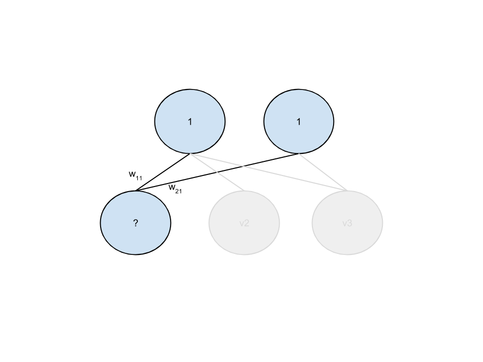P(v_i=1|h) = \sigma \left(a_i + \sum_{j=1}^n w_{i,j} h_j \right)
