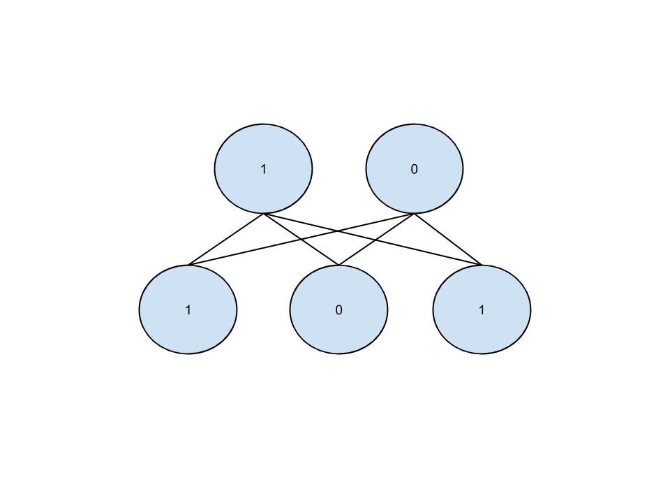 E(v, h) = -\sum \limits_{i} b_i v_i - \sum \limits_{j} c_j h_j - \sum \limits_{i} \sum \limits_{j} v_i w_{ij} h_j