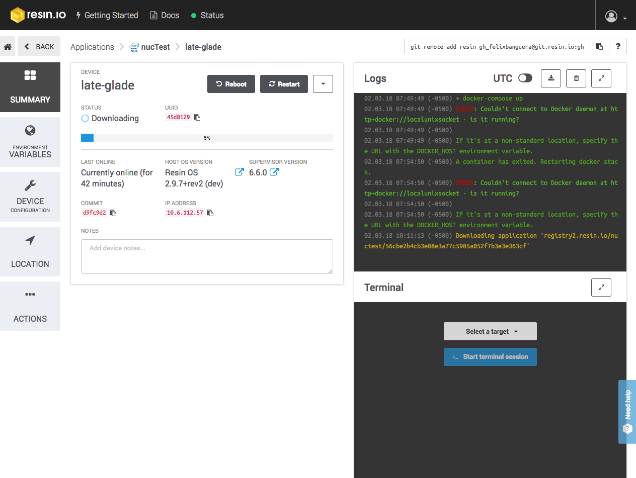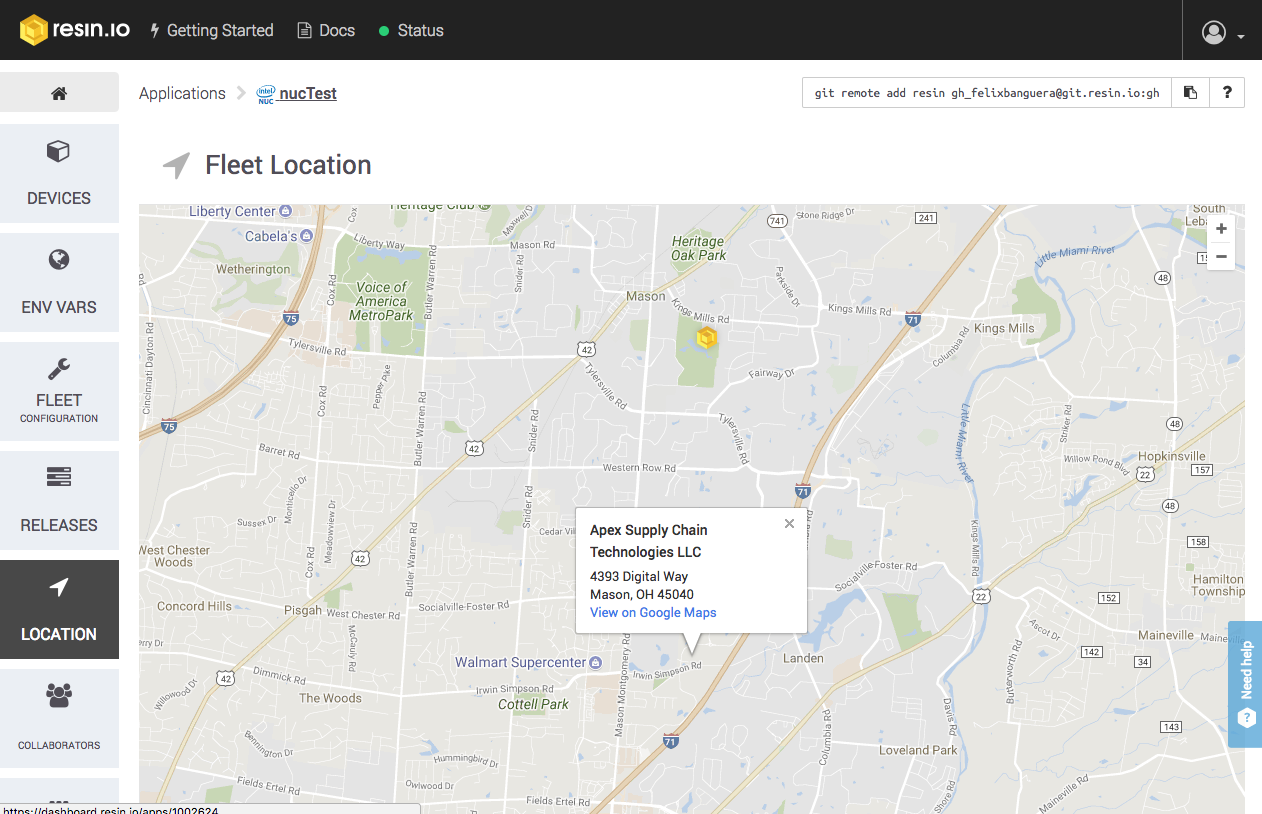 git remote add resin USERNAME>@git.resin.io:<USERNAME>/<APPNAME>.git