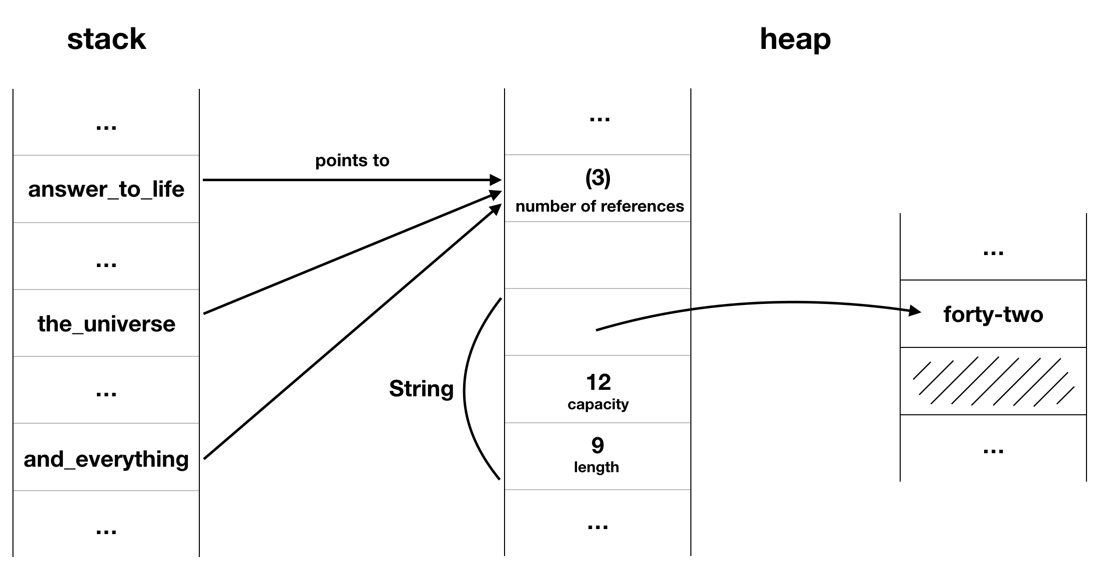 - Cada vez que clonarmos, o contador de referências será incrementado; cada vez que droparmos um, o contador de referência será decremetado; chegando a zero, temos o drop.