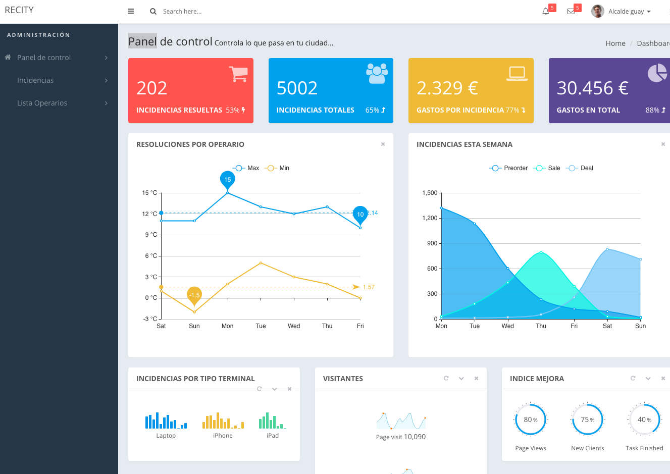 - Un panel de control para los ayuntamiento para gestionar esas incidencias