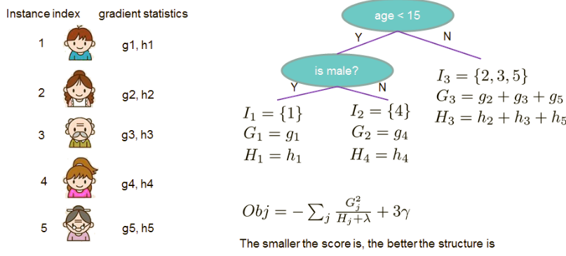 Evaluating the new loss on gives a scoring on each possible tree structure.