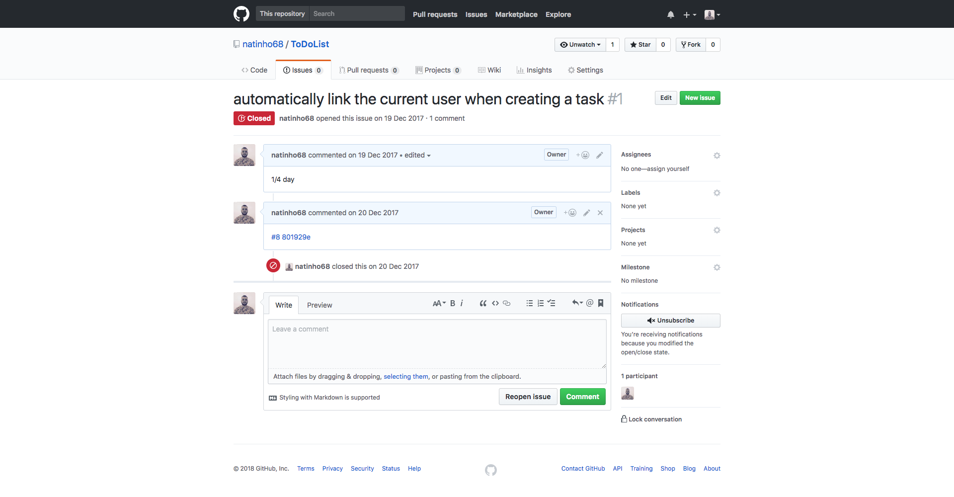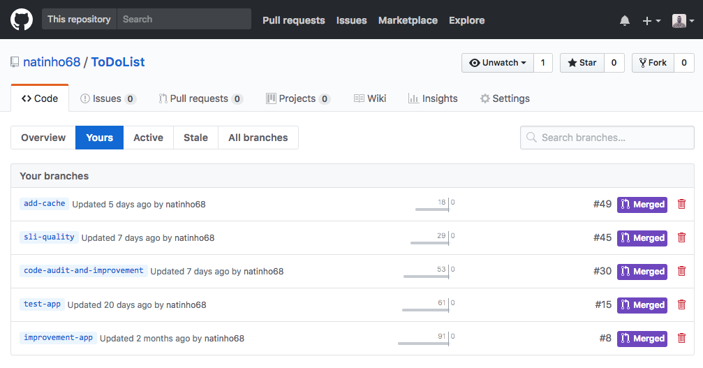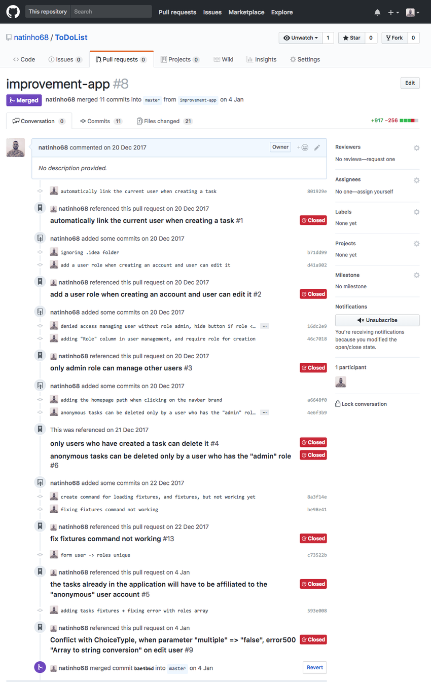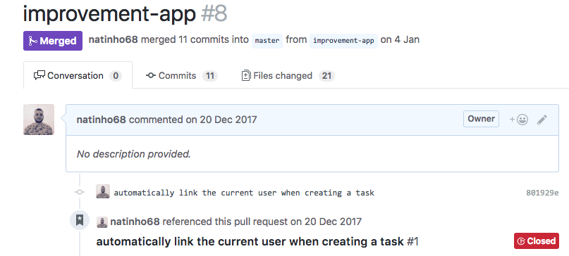 improvement-app avec commits et clôture des tâches