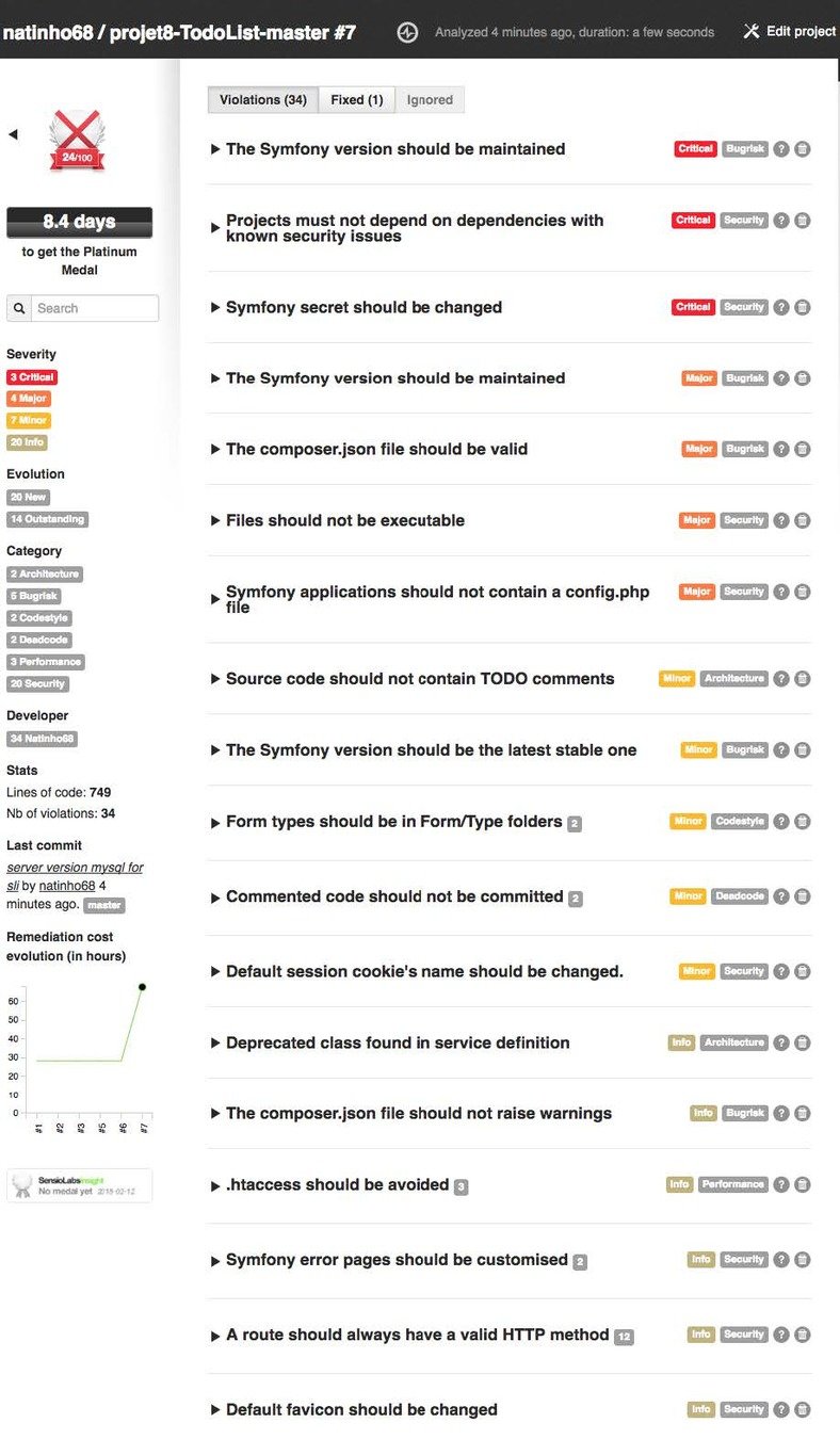 Qualité : Rapport SensioLabsInsight