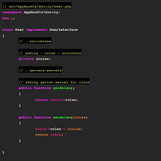 attribut "roles" dans Entité User