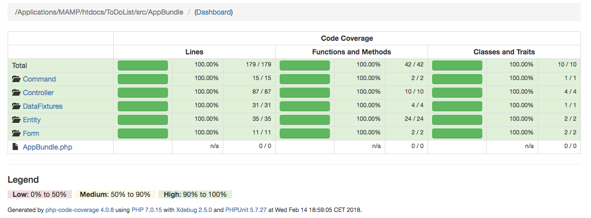 Le code coverage de l'application est désormais de 100%.
