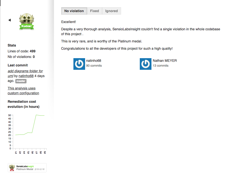 Qualité : Résultats final SensioLabsInsight, Platinum