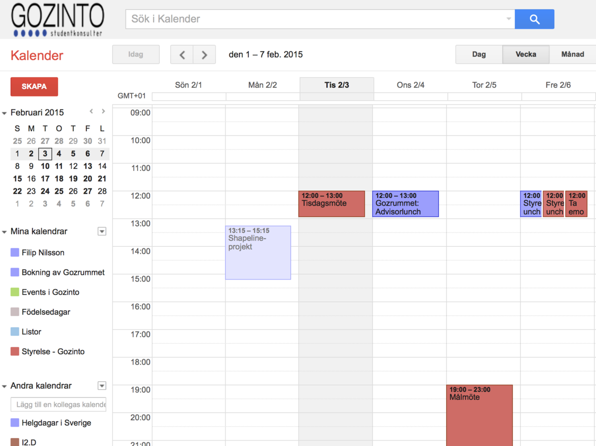 Delade kalendrar mellan hela föreningen eller bara projektgrupper.