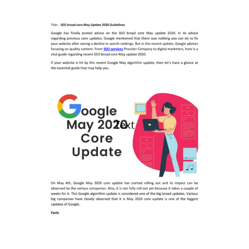 Google has finally posted advice on the SEO broad core May update 2020. In its advice regarding previous core updates, Google mentioned that there was nothing you can do to fix your website after seeing a decline in search rankings. But in this recent update, Google advises focusing on quality content. From SEO services Provider Company to digital marketers, here is a vital guide regarding recent SEO broad core May update 2020.