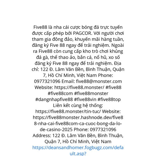 Website: https://five88monster.hashnode.dev/five88-nha-cai-five88com-ca-cuoc-bong-da-lo-de-casino-2025 Five88 là nha cái cược bóng đá trực tuyến được cấp phép bởi PAGCOR. Với người chơi tham gia đông đảo, khuyến mãi hàng tuần, đăng ký Five 88 ngay để
