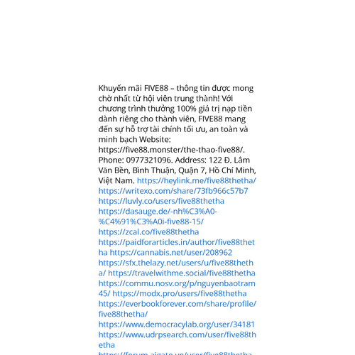 Website: https://five88.monster/the-thao-five88/. Khuyến mãi FIVE88 – thông tin được mong chờ nhất từ hội viên trung thành! Với chương trình thưởng 100% giá trị nạp tiền dành riêng cho thành viên, FIVE88 mang đến sự hỗ trợ tài chính tối ưu, an toàn v