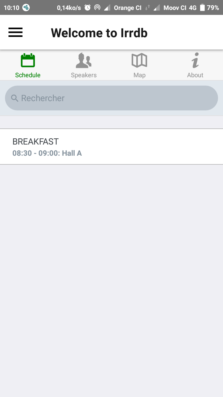 Users stay informed of the full conference schedule organised in dates and sessions. The schedule can be filtered by the event title.