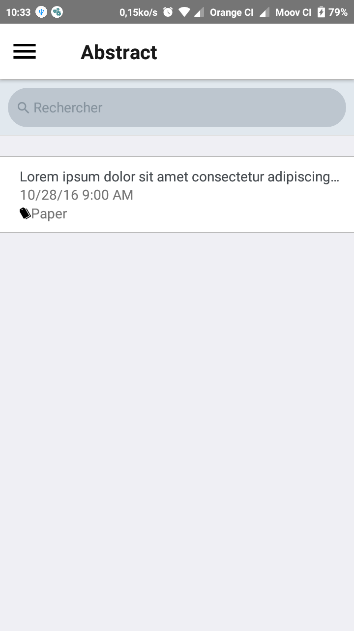 A list of abstracts is presented. Users are able to apply abstract type and date filters or search an abstract by its title.