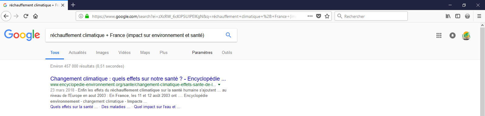 Recherche: réchauffement climatique en + France (impact sur environnement et sante)