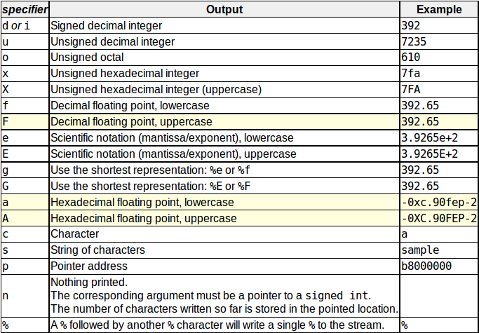 - Gestion quasi - totales des specifiers (excepté f, g, e, a)