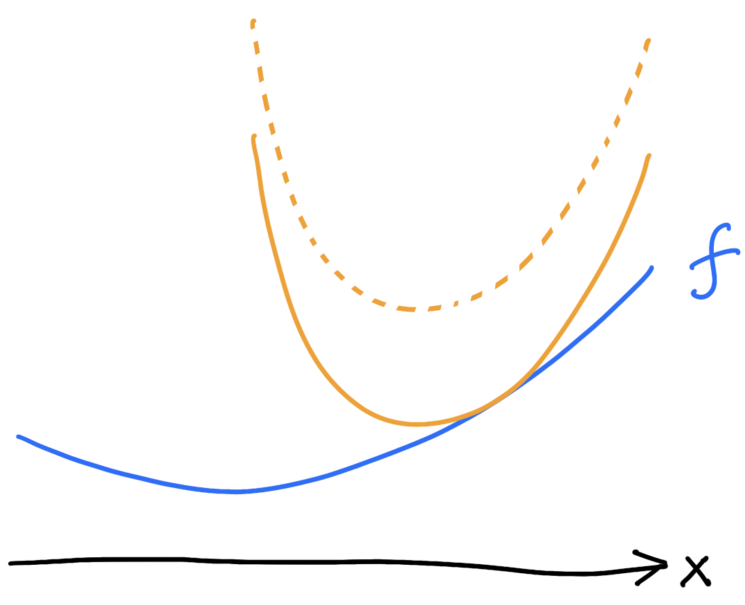 Convergence rate: if \(0\leq \nabla^2f\leq \nabla^2u\) then