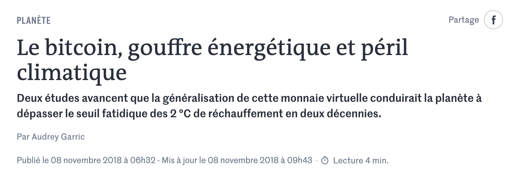 une transaction Bitcoin consomme 1 386 KWh = un foyer américain pendant au moins 1 mois et demi.